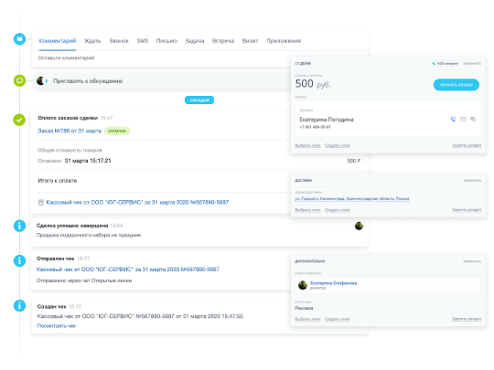 Мгновенно выходите на связь с любым сотрудником, согласовывайте документы и счета, общайтесь с коллегами.